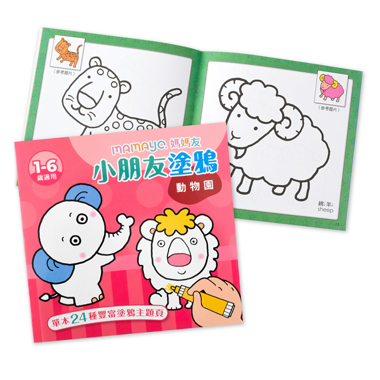 主題包含動物/植物/鳥類昆蟲/交通工具/生活用品... 等,內容同步結合注音/英文等,讓小朋友邊玩邊畫邊學習~